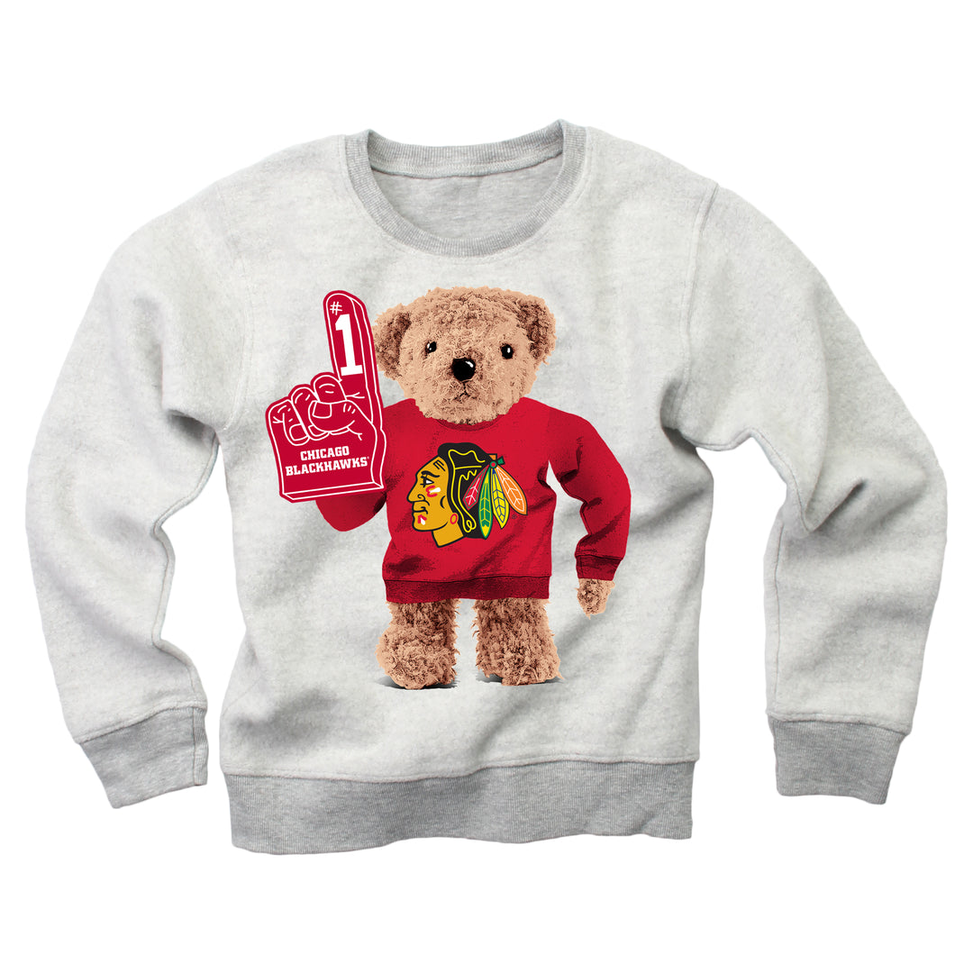 Kids Wes & Willy Chicago Blackhawks Reverse Teddy Bear Crewneck