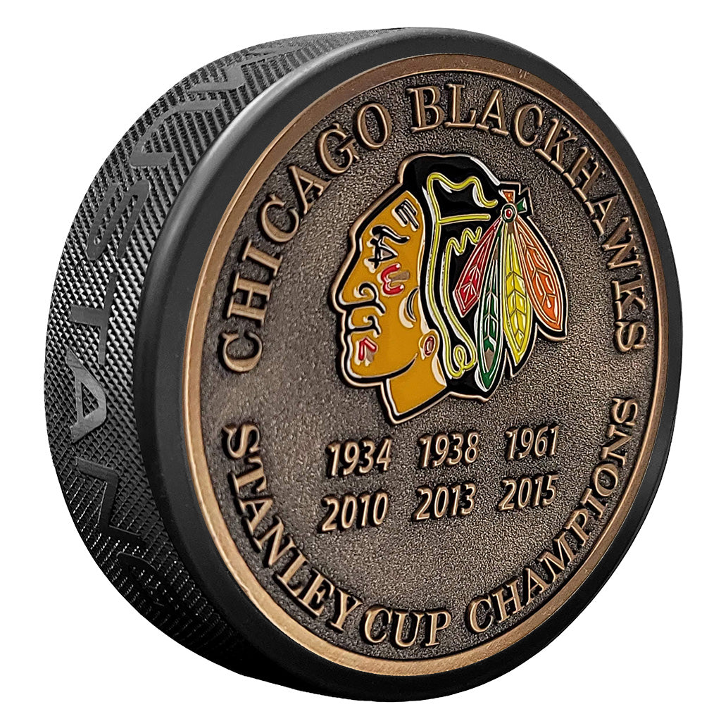 Chicago Blackhawks Puck Stanley Cup Years Gold Medallion