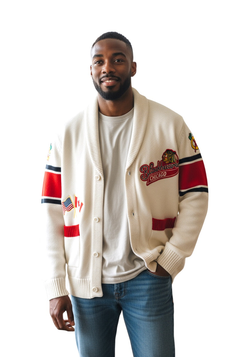 Wild Collective Chicago Blackhawks Jacquard Cardigan Sweater