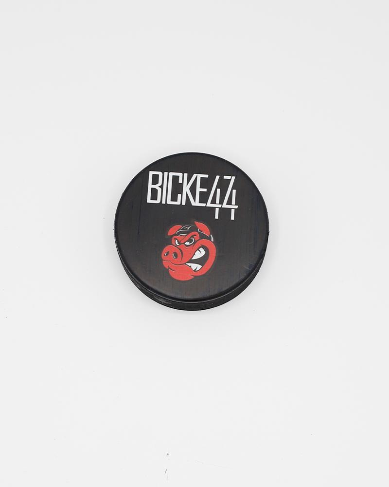 This Rockford IceHogs Bickell Puck features Hammy underneath a Bickell 44 graphic.