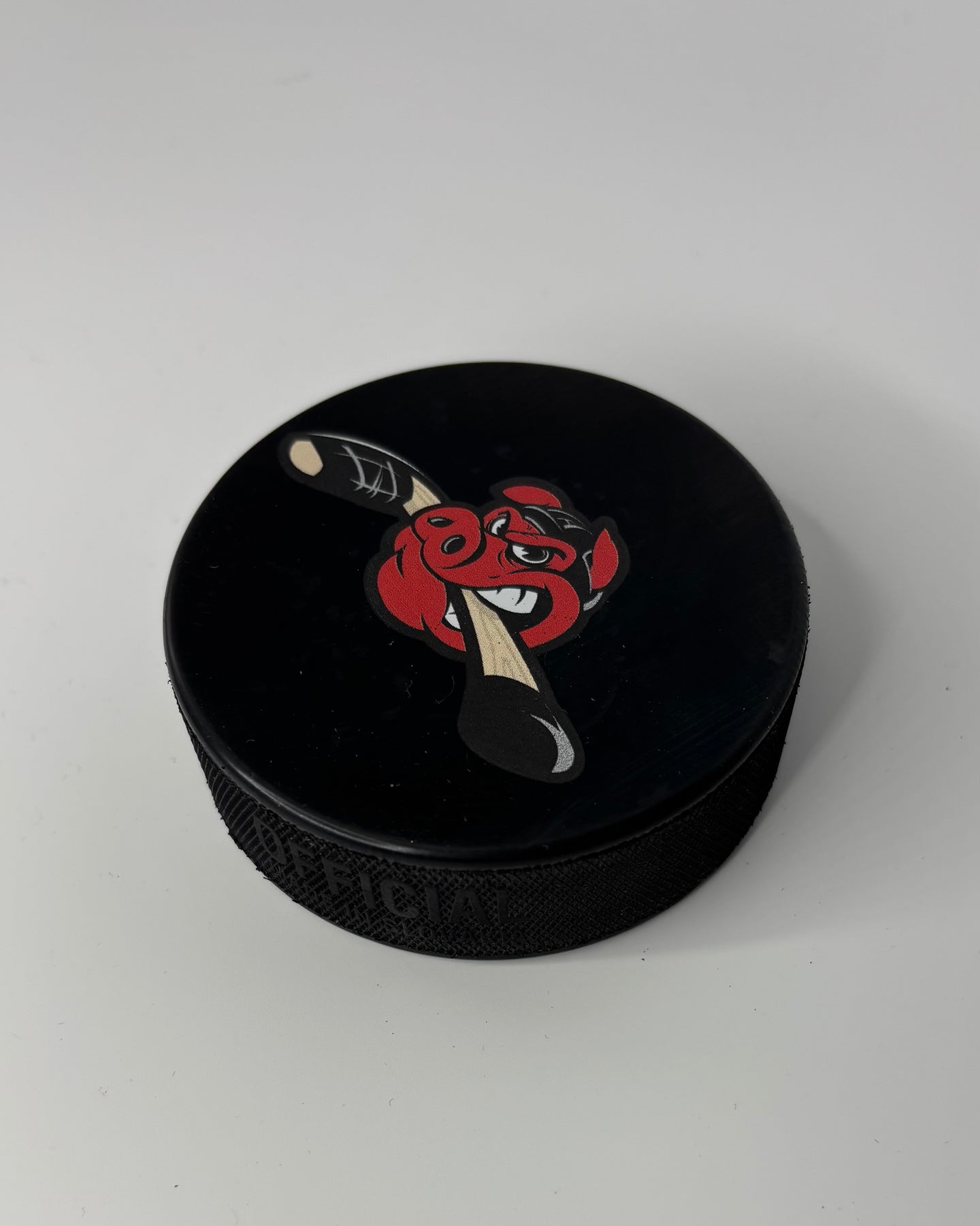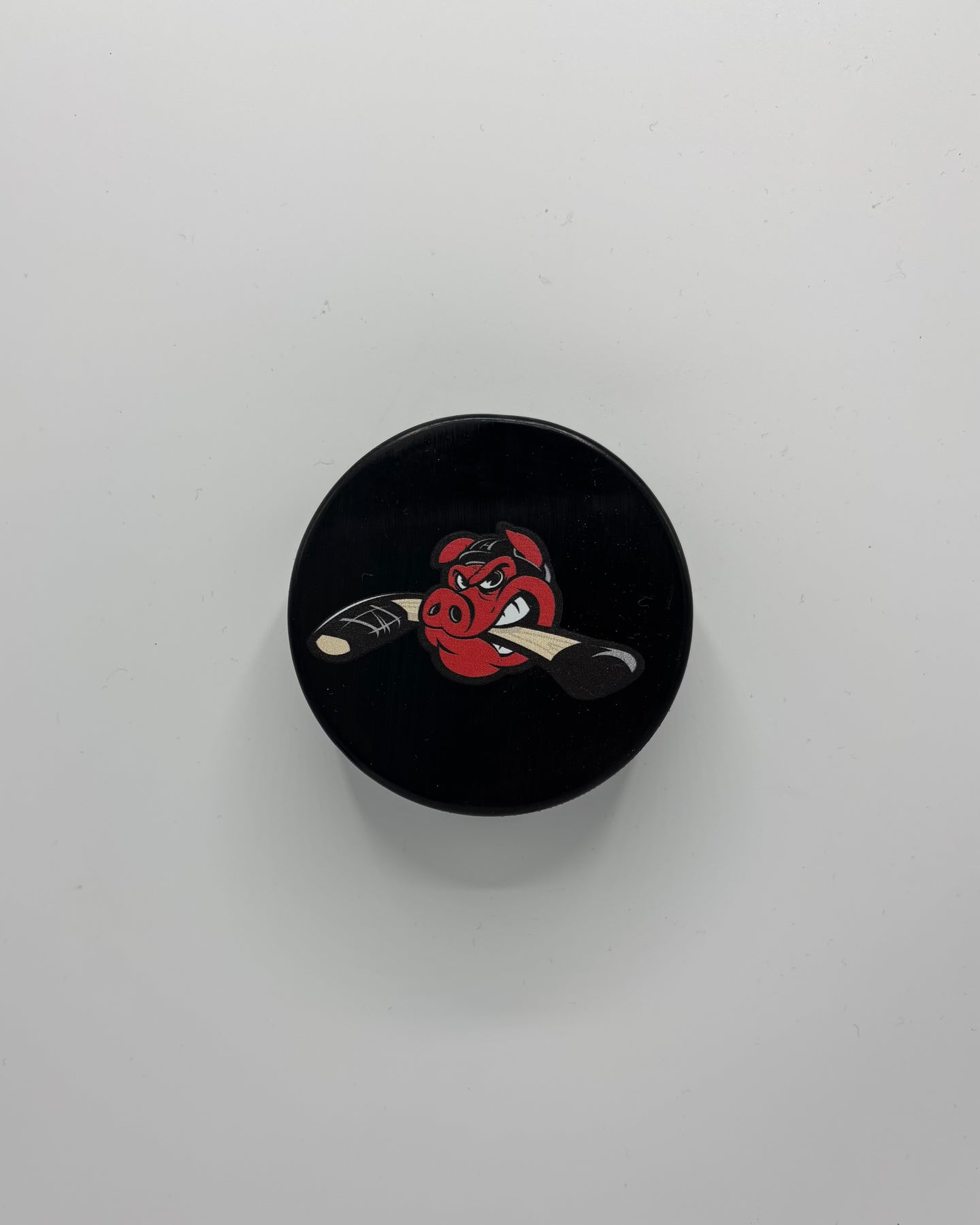 This Rockford IceHogs Hammy with Stick Hockey Puck features your favorite mascot on the front with the official AHL logo on the back.