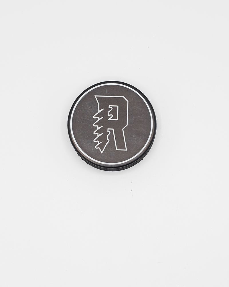 This Rockford IceHogs R Screw City Hockey Puck features a classic R screw logo on an all over black puck.