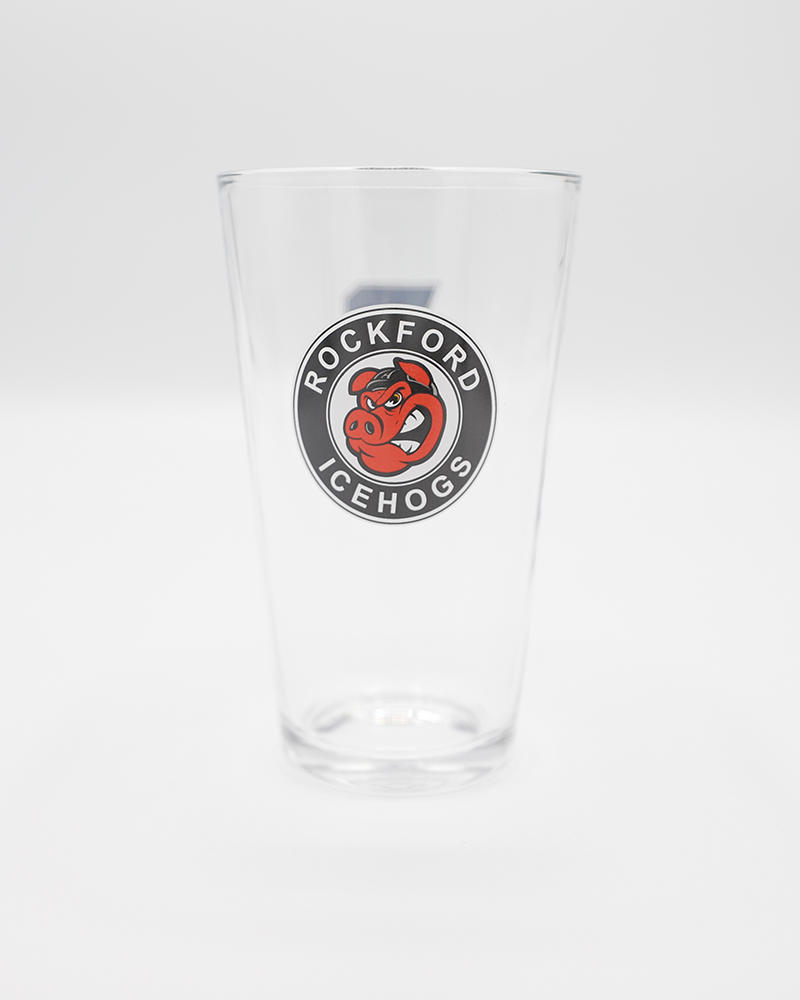This Rockford IceHogs Two Logo Pint Glass features our primary logo and screw city graphic. Rep Rockford with this classic souvenir!
