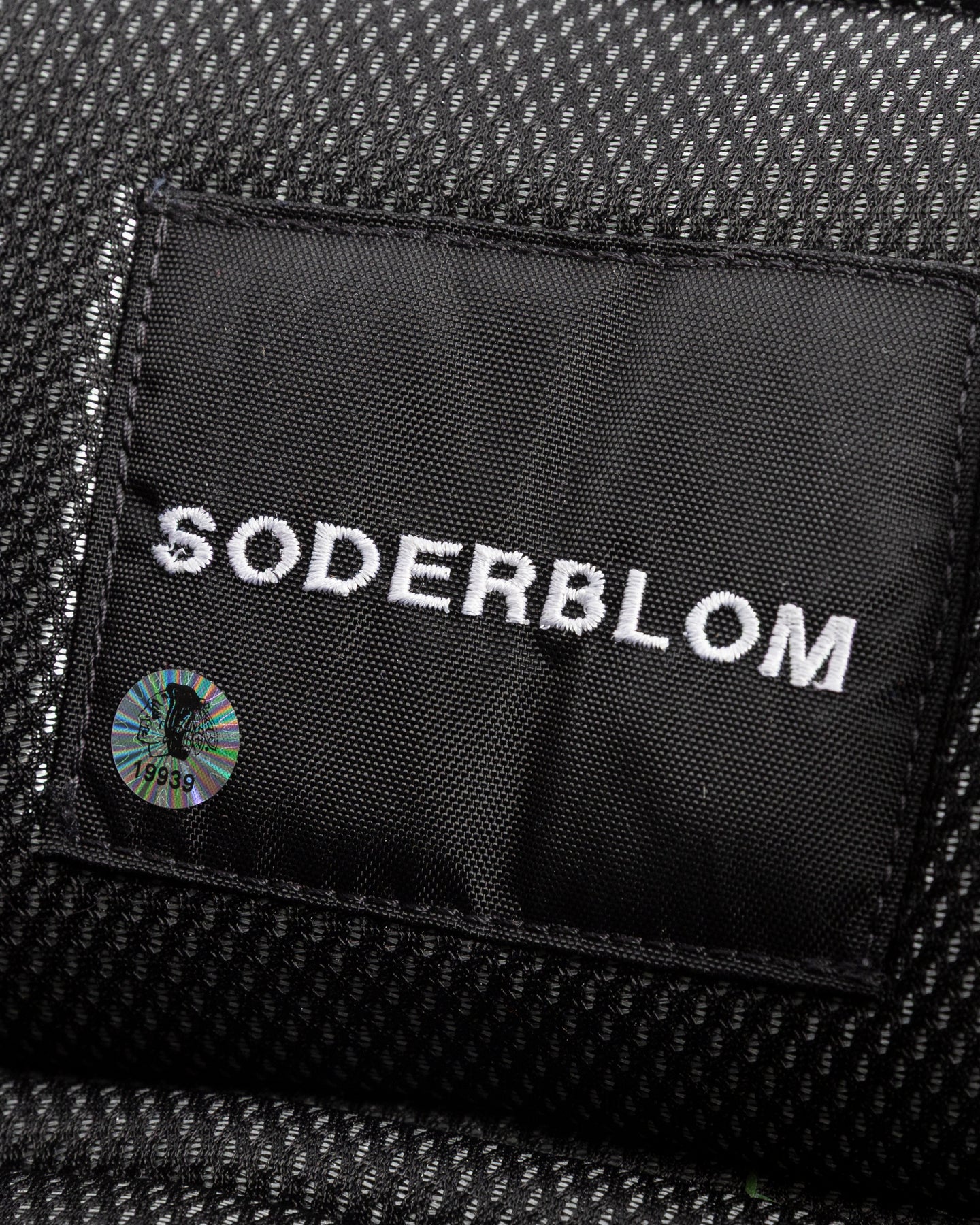 black Vaugh hockey pants used by Chicago Blackhawks goalie Arvid Soderblom - name detail lay flat