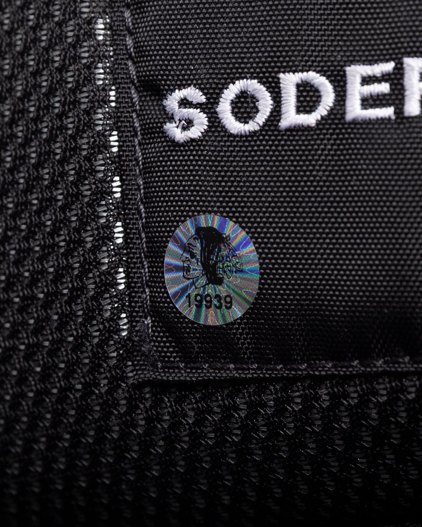black Vaugh hockey pants used by Chicago Blackhawks goalie Arvid Soderblom - hologram sticker detail lay flat