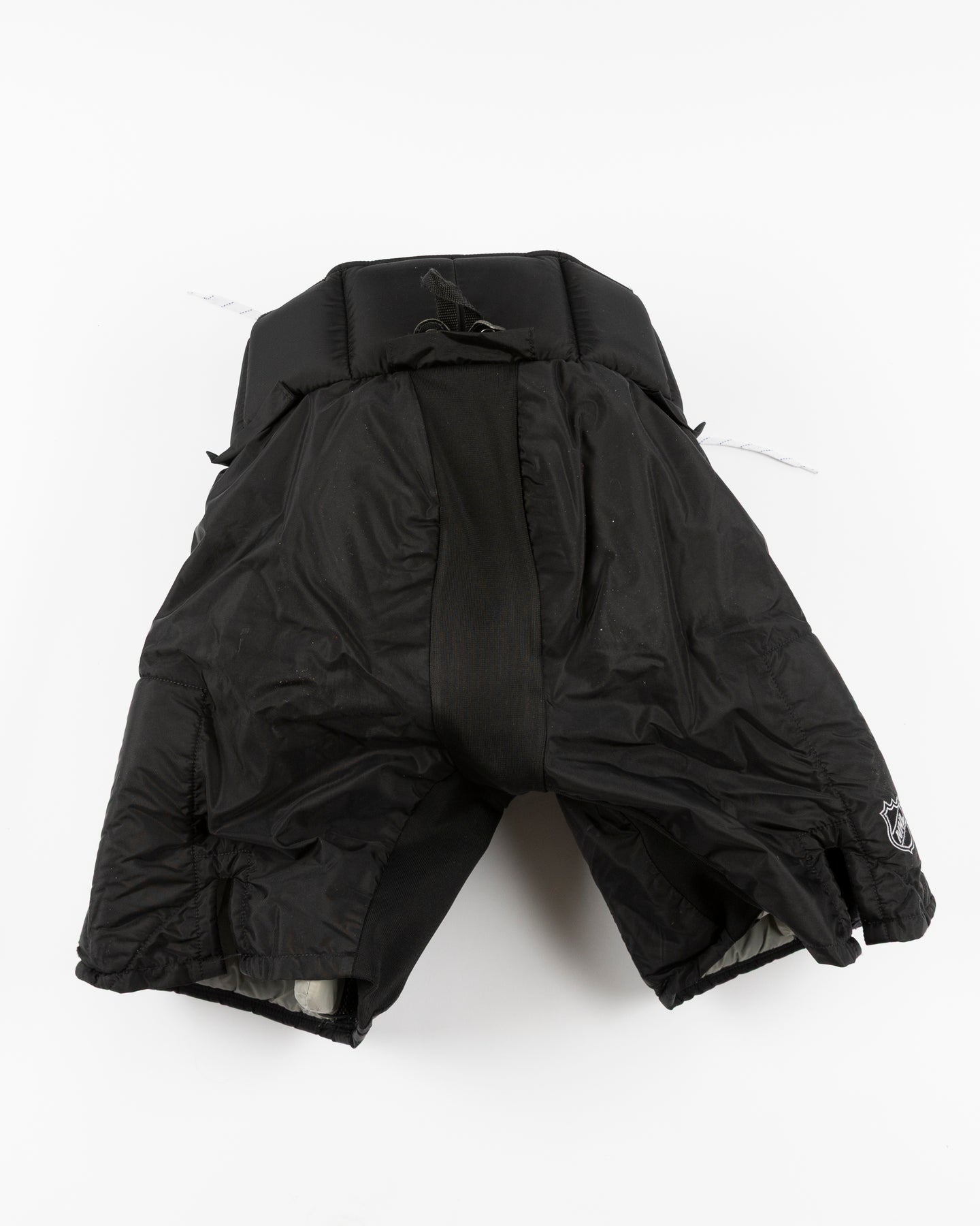 black Vaugh hockey pants used by Chicago Blackhawks goalie Arvid Soderblom - back lay flat