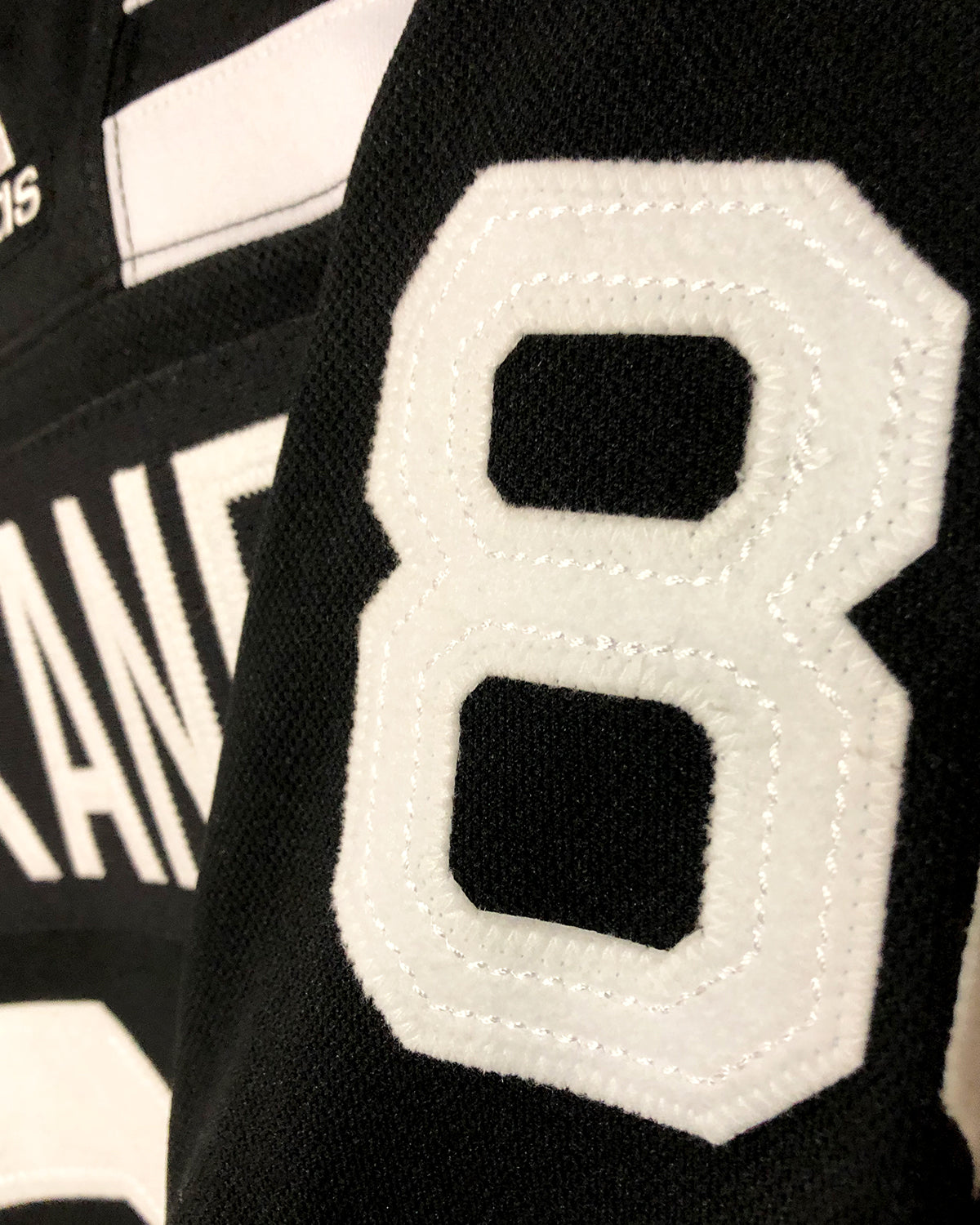 Once your order is placed, and your jersey is received, we send your jersey off to our lettering company to be customized. Your jersey is sent to the same lettering company as the team’s on-ice jerseys. Our letterer has been the official lettering supplier to the Chicago Blackhawks since 1995.