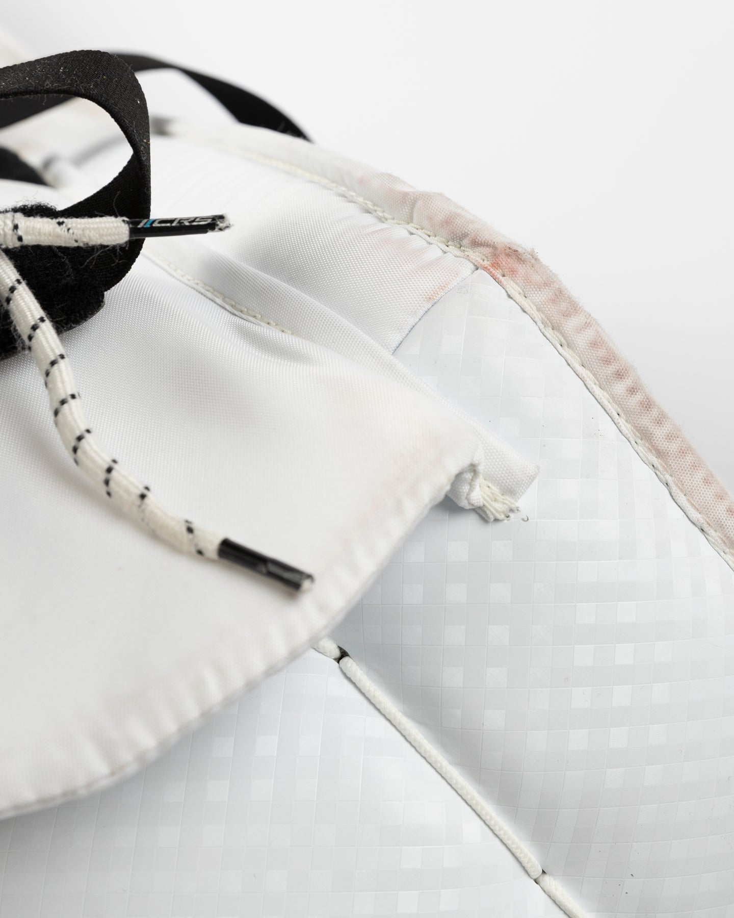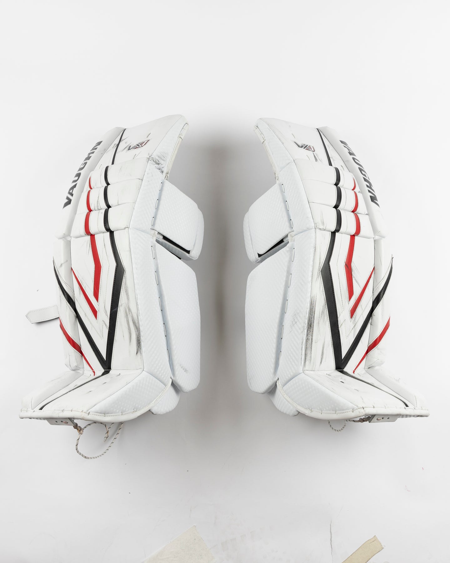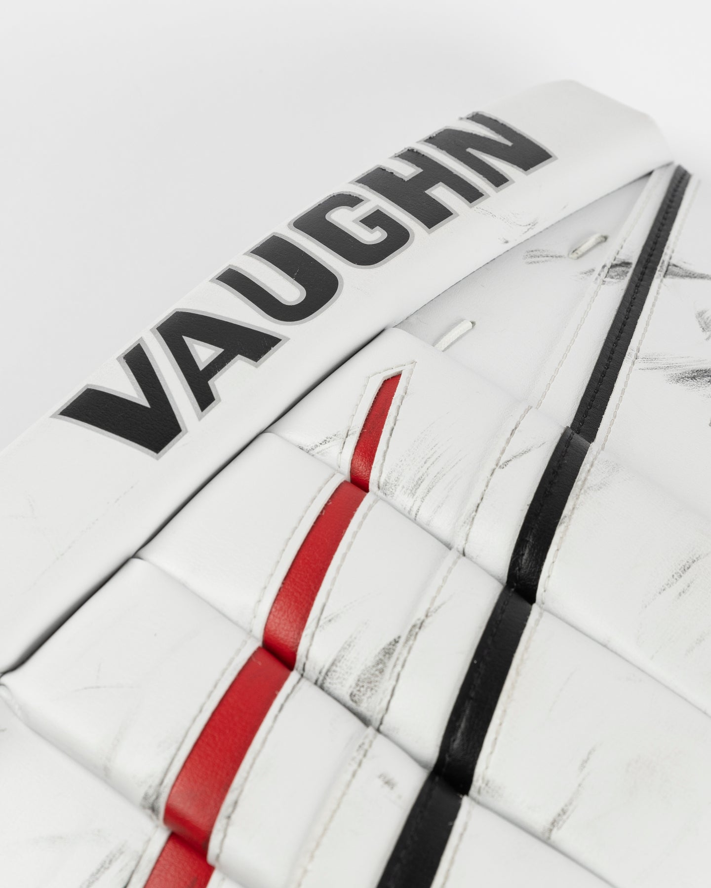 These Vaughn goalie leg pads were worn by Petr Mrazek and have been authenticated with hologram sticker 19944. He is pictured wearing these pads on December 21, 2024 at Calgary. This item is not autographed.