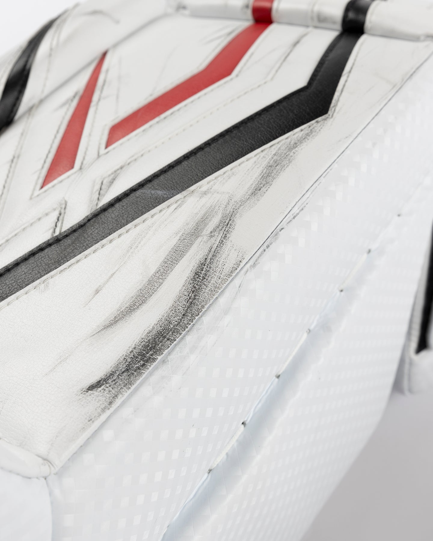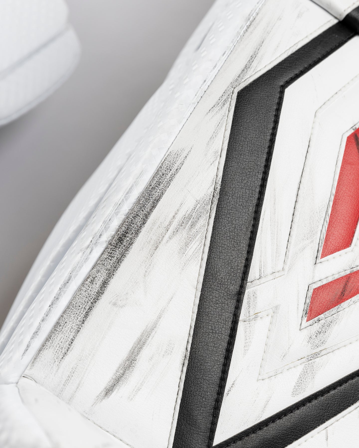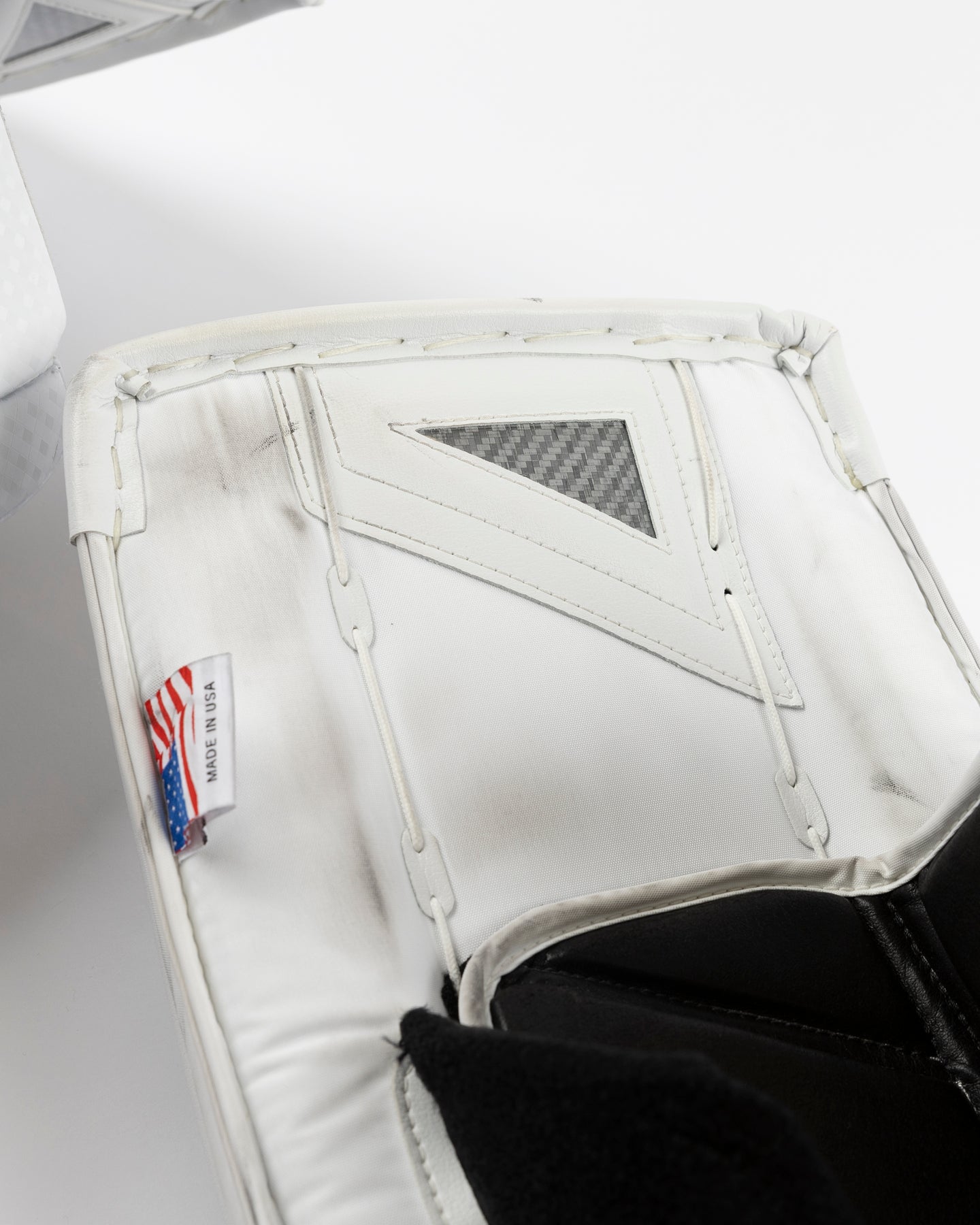 These Vaughn goalie leg pads were worn by Petr Mrazek and have been authenticated with hologram sticker 19944. He is pictured wearing these pads on December 21, 2024 at Calgary. This item is not autographed.