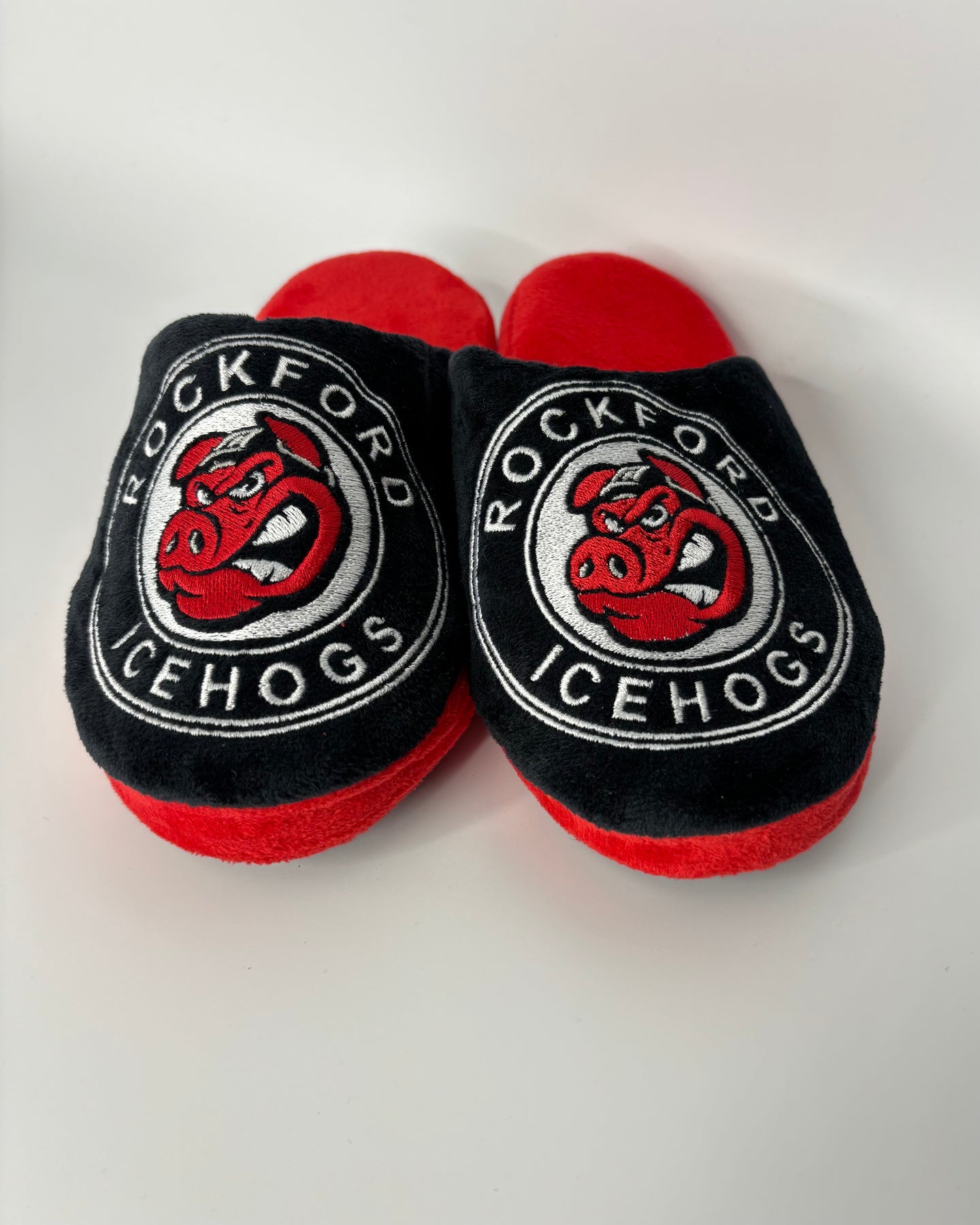 These Rockford IceHogs Youth Slippers feature a bold medallion logo embroidered on each slipper with a super soft plush material, closed, round toe design and gripped outsoles.