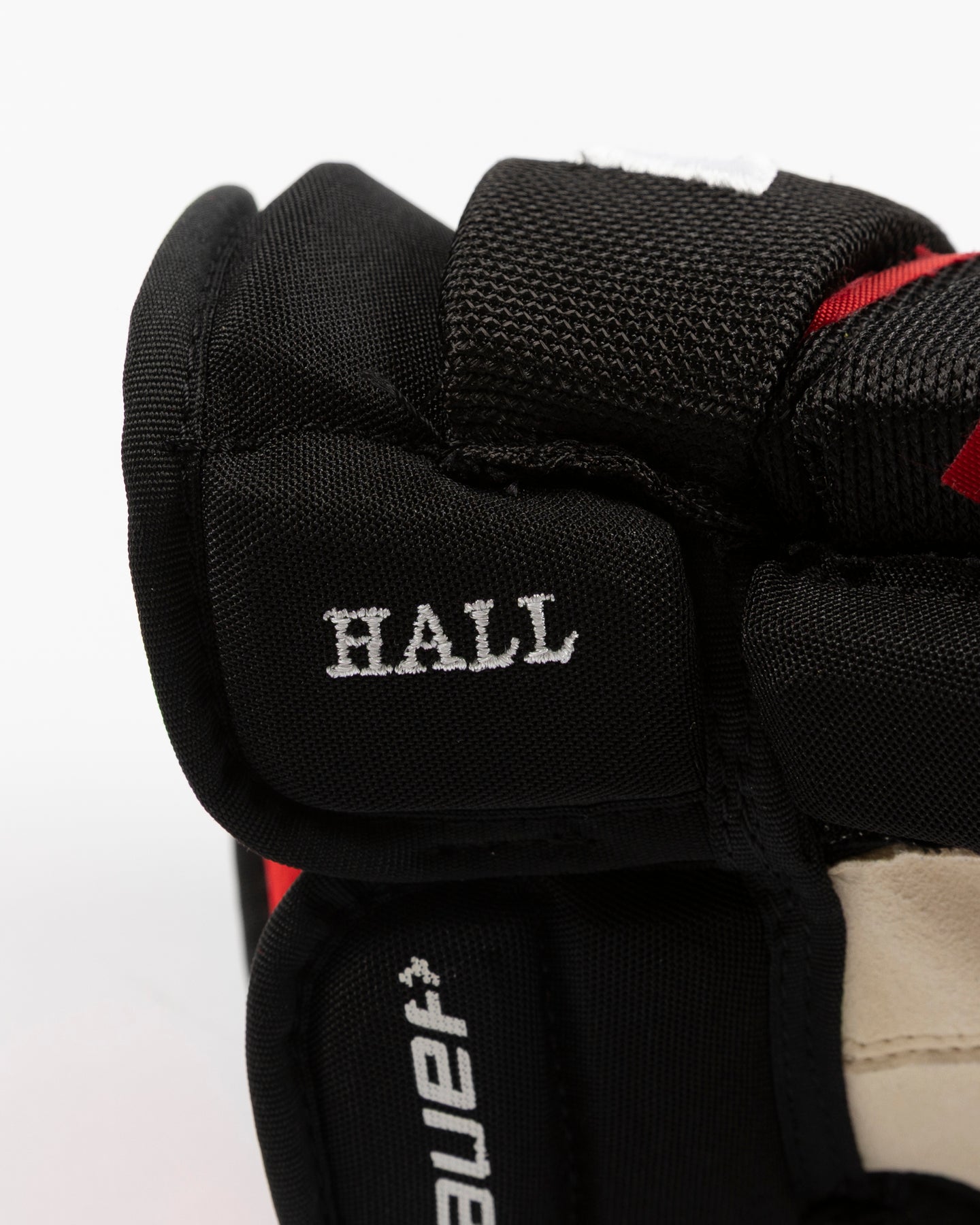 These Bauer gloves were worn by Taylor Hall and have been authenticated with hologram sticker 19934. This item is not autographed.
